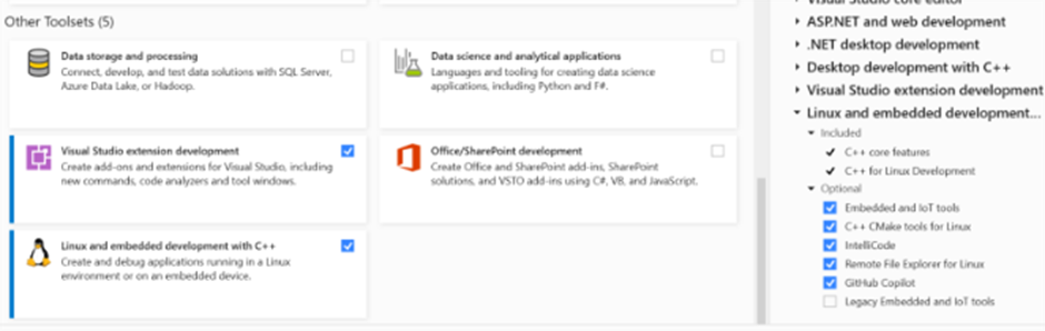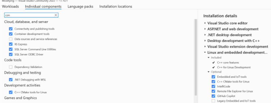 Then go to Individual components and search for Container development tools and activate it. Then click on install while downloading.