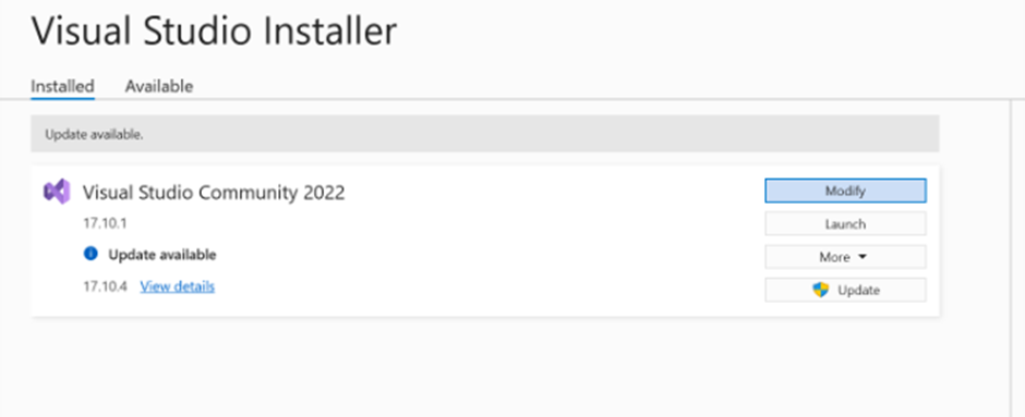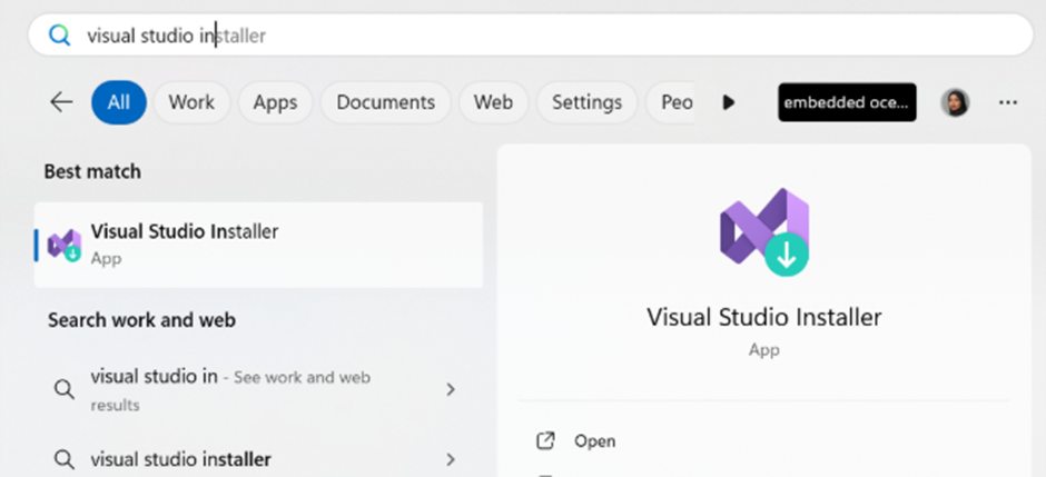 Type in the Windows search bar “Visual Studio installer” and start it.